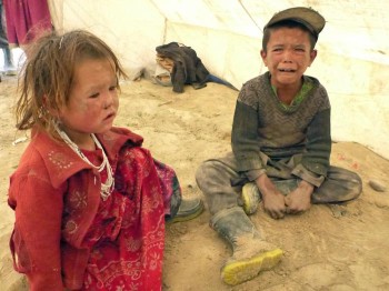epa04189642 Afghan children displaced after a landslide wait for relief in Argu village, Badakhshan province, Afghanistan, 03 May 2014. At least 260 people have been found dead and 300 families are still missing and feared dead in the mudslide in the north-eastern Afghanistan village of Ab-e-Barik in Argu district. About 2,000 people have fled the area of the fatal mudslide, police said. The disaster occurred on 02 May after heavy rainfall in the mountainous province of Badakhshan, burying an entire village. EPA/MUHAMMAD SHARIF