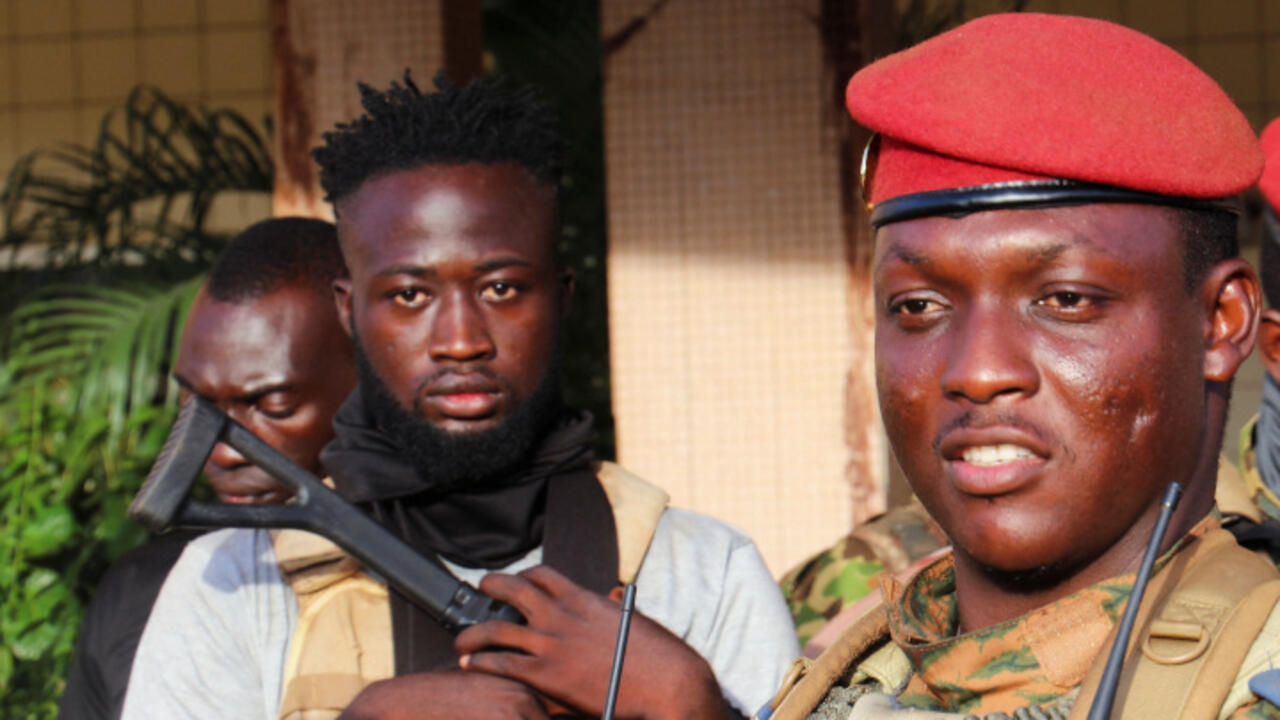 Burkina Faso’s new military leader Ibrahim Traore is escorted by soldiers in Ouagadougou