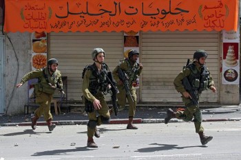 epa04269295 Israeli soldiers run during clashes with Palestinians in the West Bank city of Hebron, 20 June 2014. Since the beginning of the Israeli operation about 370 Palestinian activists have reportedly been arrested, including 200 members of the radical Hamas organization, and some 900 buildings have been searched. Israel pushed ahead with large-scale raids of Palestinian towns and cities in a search for three teenagers it says were abducted by Hamas in the West Bank. The raids have been taking place since the teens went missing on June 12 from a common hitchhike stop near a settlement block south of Jerusalem. Neither Hamas nor any other group has claimed responsibility for the disappearances. EPA/ABIR SULTAN
