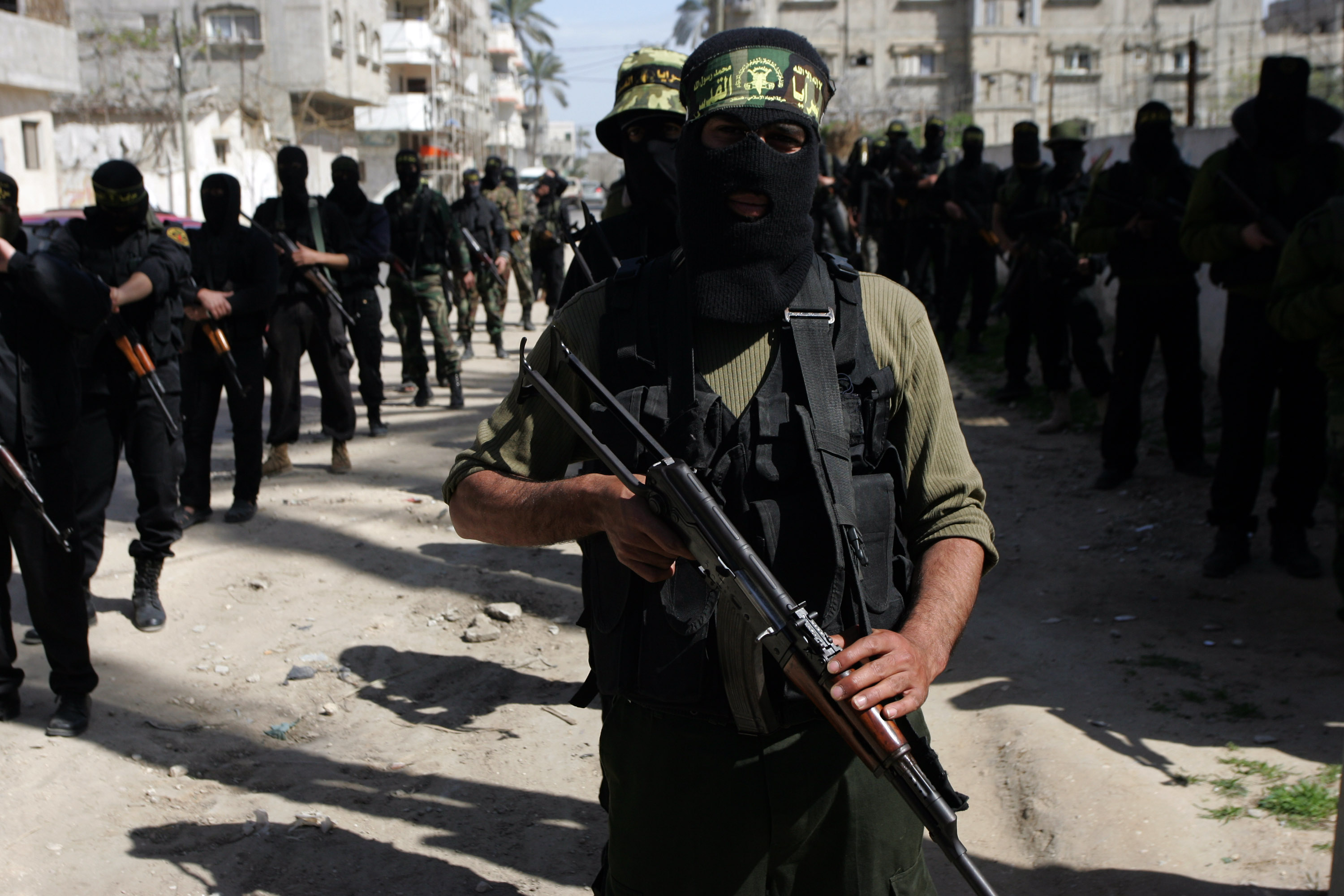 Masked Palestinian members of the Islamic Jihad military wing Saraya Al-Quds or ‘Jerusalem Brigades’ attend funeral of militant of Islamic Jihad Abeed Shaheen, during his funeral in Deir al-Balah central Gaza strip February 28, 2011. UPI/Ismael Mohamad.