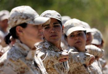 epa04404185 Members of the Kurdish female Peshmerga battalion recieve military training at a base near Sulaimaniya, northern Iraq, 17 September 2014. The Iraqi Kurdish women’s battalion formed in 1996 includes 550 female soldiers, led by Colonel Nahida Ahmed Rashid and according to media sources could see combat on the frontlines in the fight against Islamic State (IS) as have other female Kurdish fighters attached to militias in Syria and the Kurdistan Workers’ Party (PKK) from Turkey. EPA/MOHAMED MESSARA