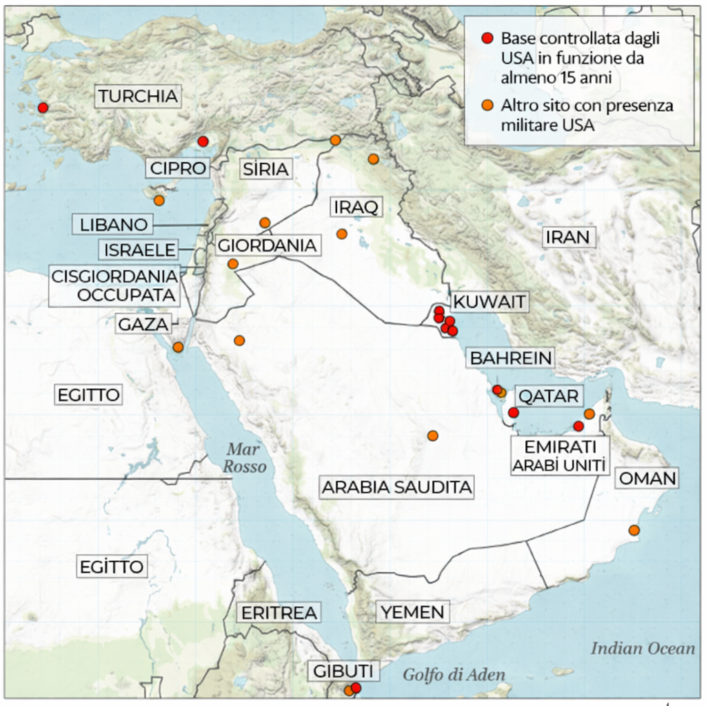 Ciò non significa che gli Stati Uniti siano privi di strumenti militari. Washington mantiene una rete articolata di basi permanenti e temporanee in almeno 19 località della regione, con installazioni chiave in Qatar, Bahrain, Kuwait, Arabia Saudita ed Emirati Arabi Uniti. Queste strutture garantiscono capacità di sorveglianza, proiezione aerea e attacco di precisione, inclusa la possibilità di impiegare bombardieri strategici in grado di colpire obiettivi fortificati in profondità.