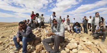 Turkish Kurds watch fighting between Islamic militants and Kurdish forces to the west of Kobani, Syria, at the Turkey-Syria border near Suruc, Turkey, Tuesday, Sept. 30, 2014. U.S.-led coalition airstrikes targeted fighters, vehicles and artillery pieces of the Islamic State group on both sides of the Syria-Iraq frontier Tuesday, including around a beleaguered Kurdish town near the Syrian-Turkish border that is under assault by the militants, activists said. (AP Photo/Burhan Ozbilici)