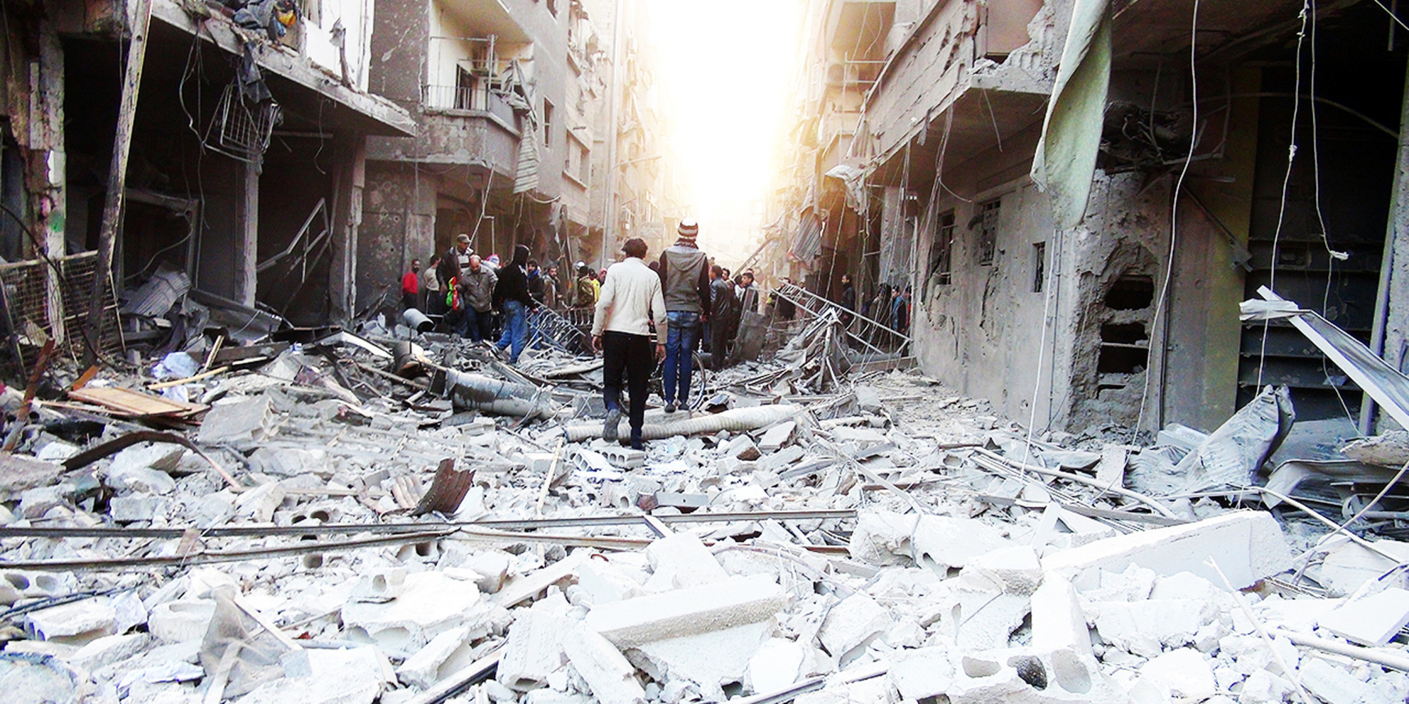 DAMASCUS, SYRIA – JANUARY 17: Syrians in Damascus gathering to protests both the barrel bomb attacks and the situation of the Yarmouk refugee camp on January 17, 2014. (Photo by Stringer/Anadolu Agency/Getty Images)