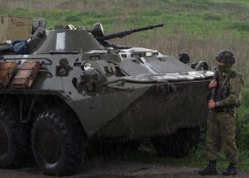 epa04189143 Unmarked soldiers wait on the road as separatists block the Kramatorsk road to prevent them from advancing near Krematorsk, Ukraine, 02 May 2014. At least three people were killed and several were injured in clashes between Ukrainian forces and separatists in the eastern city of Sloviansk early on 02 May. The Ukrainian Defence Ministry said that two crew members were killed and an unspecified number of soldiers were injured after separatists shot down two Mi-24 assault helicopters with surface-to-air missiles. Sloviansk has been at the centre of a separatist uprising in eastern Ukraine. The city of some 100,000 has been held by well-armed militias for weeks. EPA/IGOR KOVALENKO POLAND OUT